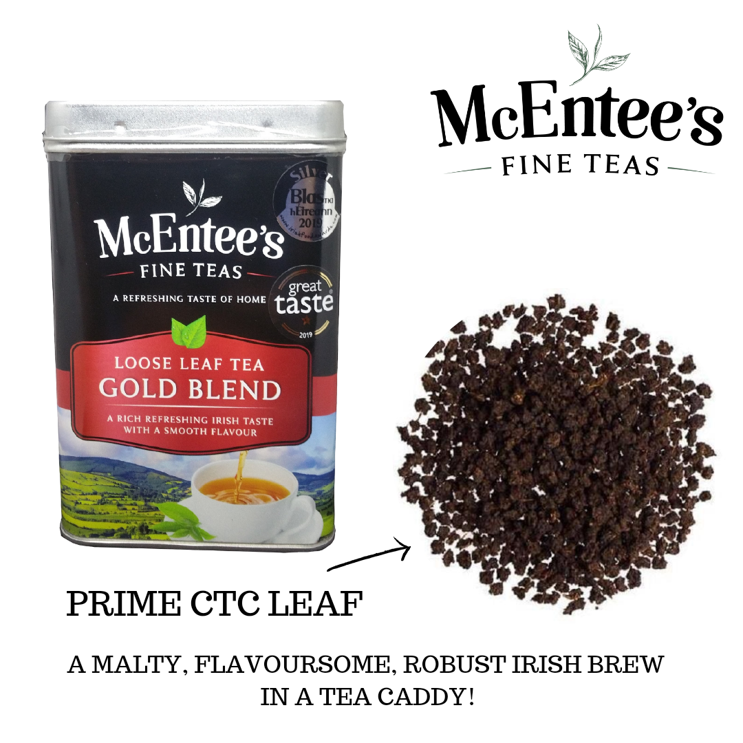 Nuestro Gold Blend ha sido galardonado con Plata en el Blas na hEireann Irish Food Awards que reconoce los mejores alimentos y productores irlandeses y también una estrella de oro de la Premio al gran gusto del Reino Unido . Disfrute de una experiencia rica y con mucho cuerpo con el té irlandés Gold Blend. Elaborado con ingredientes cuidadosamente seleccionados, este té presenta una mezcla única de sabores a malta y atrevidos, y un tono dorado vibrante. Disfrute del satisfactorio sabor y aroma de cada taza y mejore su experiencia de beber té con el té irlandés McEntee's Gold Blend.